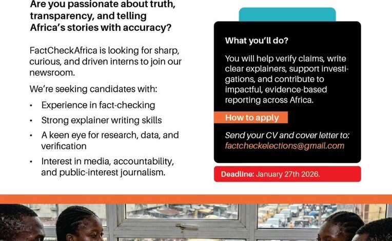 FactCheckAfrica is a leading initiative dedicated to promoting media literacy, fighting digital falsehoods, and fostering accountability across the continent. We are officially inviting applications for our 4-Month Graduate Internship Program, designed for the next generation of researchers and journalists committed to safeguarding the integrity of information.